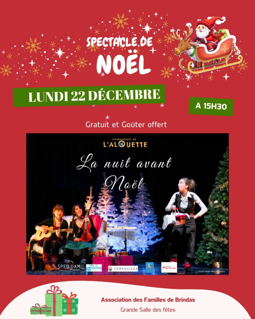Rendez-vous en famille le 22 décembre à 15h30 à la salle des fêtes de Brindas pour notre traditionnel spectacle de Noël, suivi d’un goûter, offerts aux enfants.