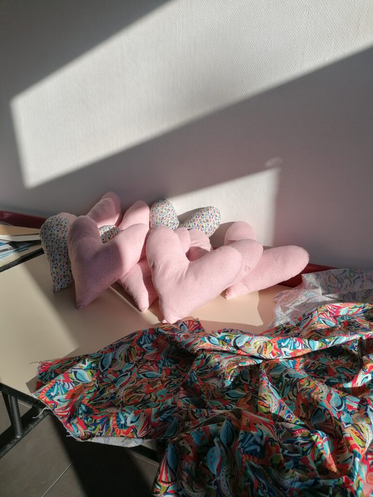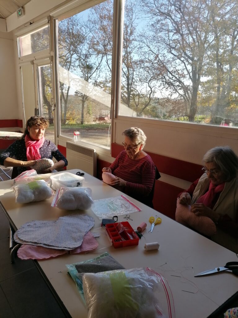 Octobre rose en novembre. L’une de nos adhérentes nous avais fait part de son projet d’aider les malades. Nous avons décidé, avec le soutien de la mairie, de l’accompagner dans son initiative d’organiser une journée dédiée à cette cause. Certaines personnes vont marcher, d’autres courir ou même danser et bien nous, nous avons choisi : COUTURE ! Un jour de couture pour confectionner divers articles pour soulager les personnes atteintes de cette maladie. Un grand MERCI à tous les participants qui ont réalisés pleins d’objets à remettre à l’hôpital.